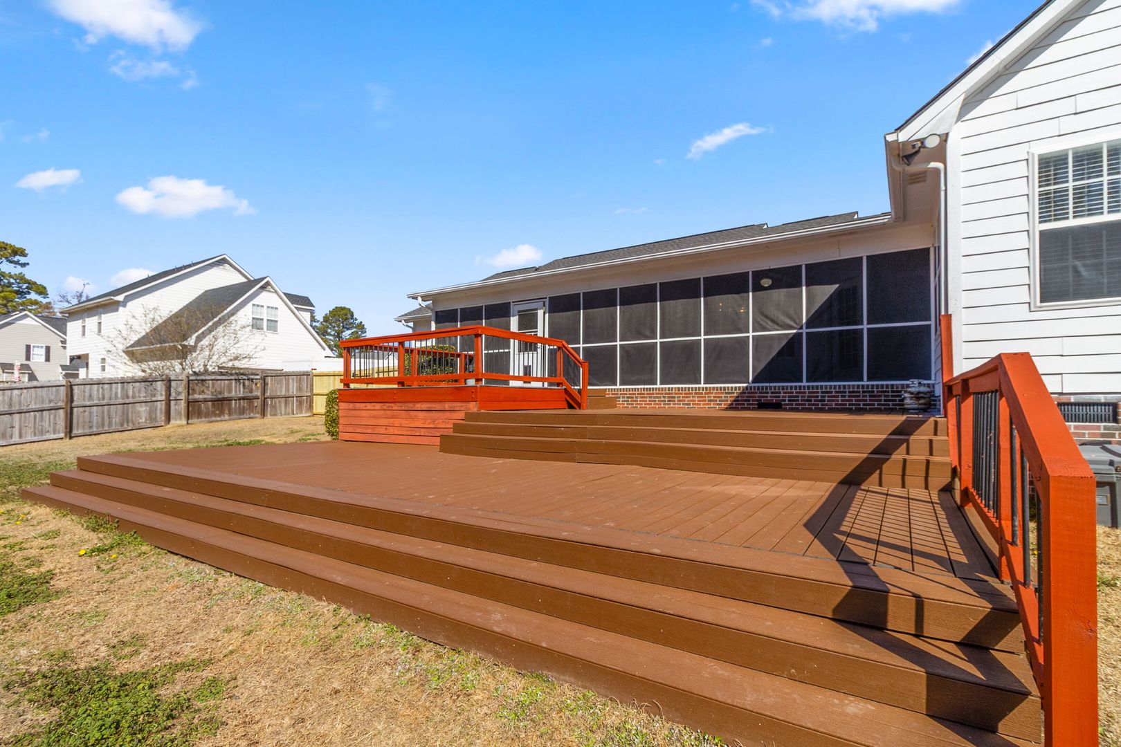 This spacious ranch-style home offers fresh paint throughout and a bright, welcoming layout. The kitchen features granite countertops and opens to a formal dining room, perfect for everyday meals or entertaining. A large bonus room provides extra space for an office, playroom, or additional living area. Enjoy outdoor living with a screened-in porch, expansive deck, and a large backyard ideal for relaxing or gatherings. Conveniently located near the Chicken Road gate to Fort Liberty, this home offers an easy commute and nearby amenities.